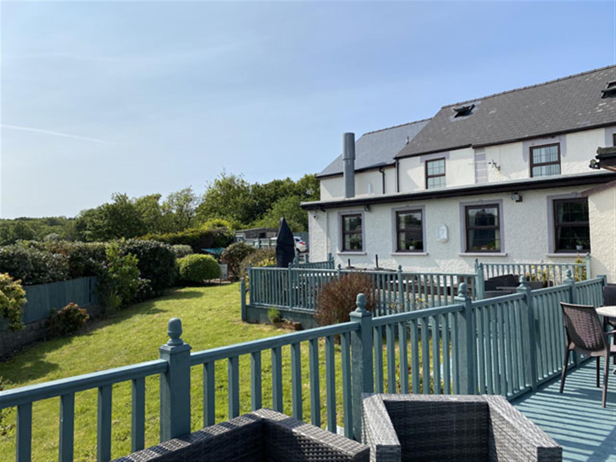 The gardens are a feature of the property and include two DECKED AREAS. There is also a further LAWNED SECTION. External rattan style seating for 30 customers. The garden has views over the adjacent rolling countryside. There is an ‘L’ shaped CAR PARK with lined space for 22 vehicles.