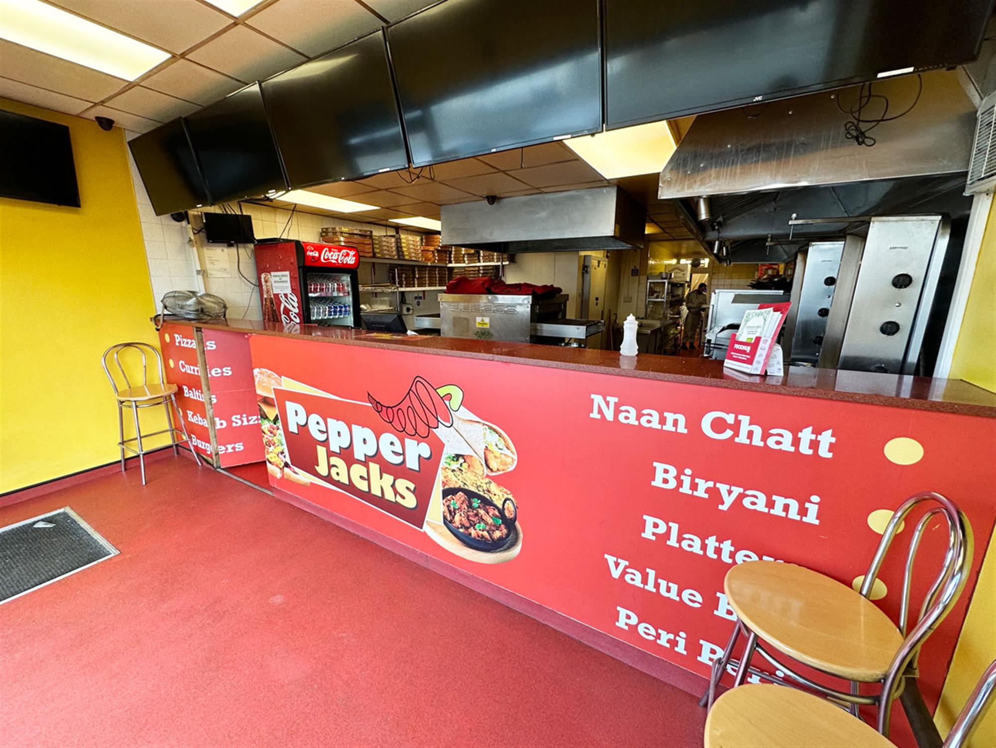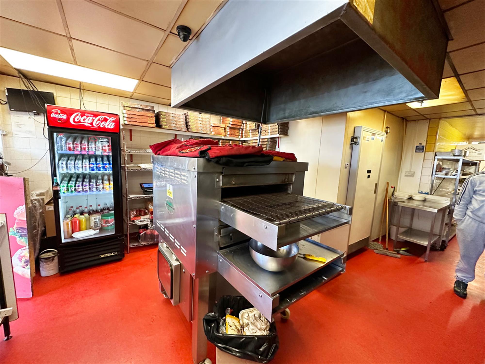 Owner parking to front, glass fronted unit, entrance, waiting/ordering area, large service counter. Large open plan kitchen providing large double deck conveyor pizza oven, preparation area, kebab area, large charcoal grill, walk in fridge, steamer, tandoori oven, 10 burner stove, further preparation area, good sized store room, preparation room with washing up area, staff WC, exit to bin area.