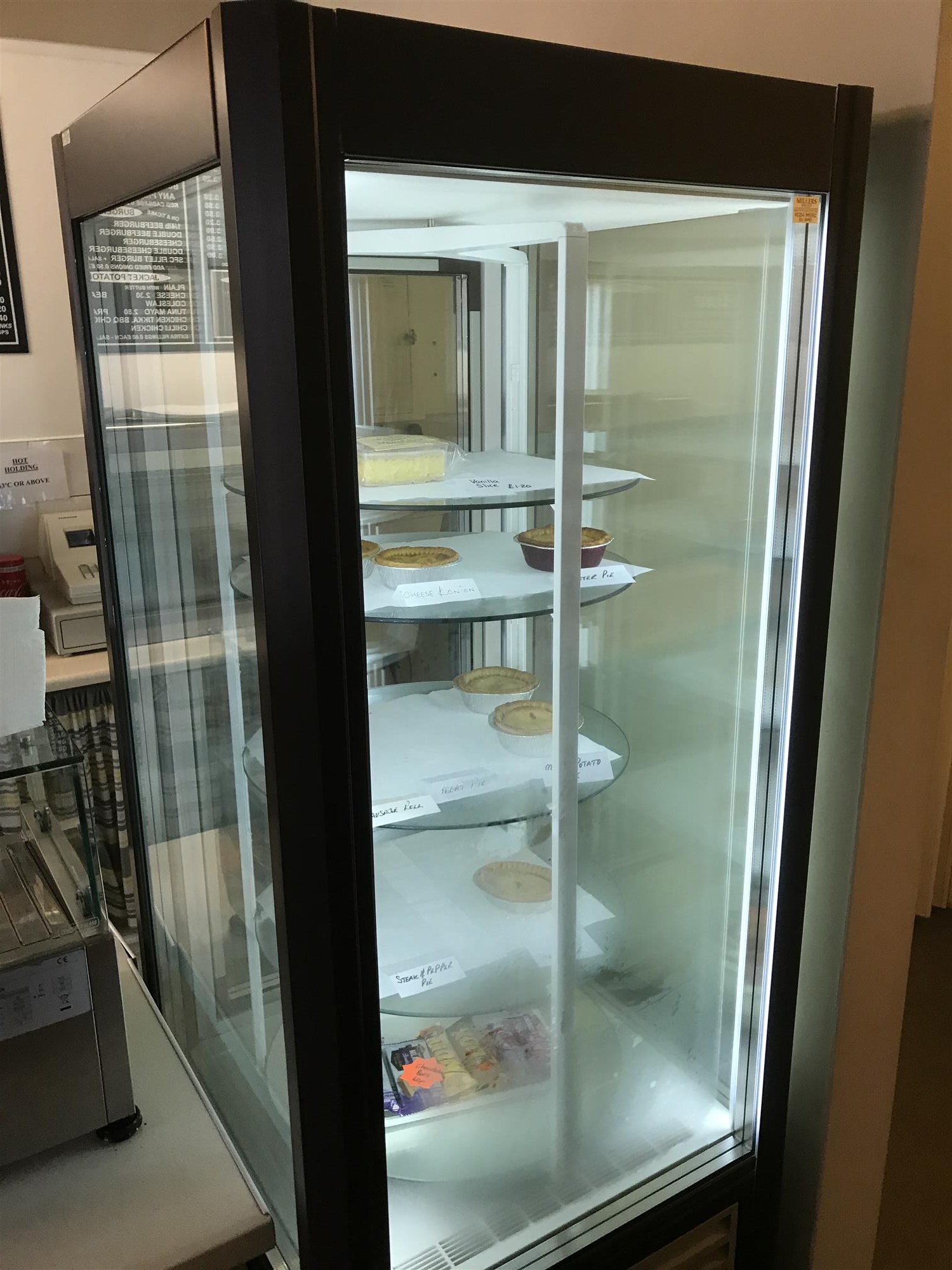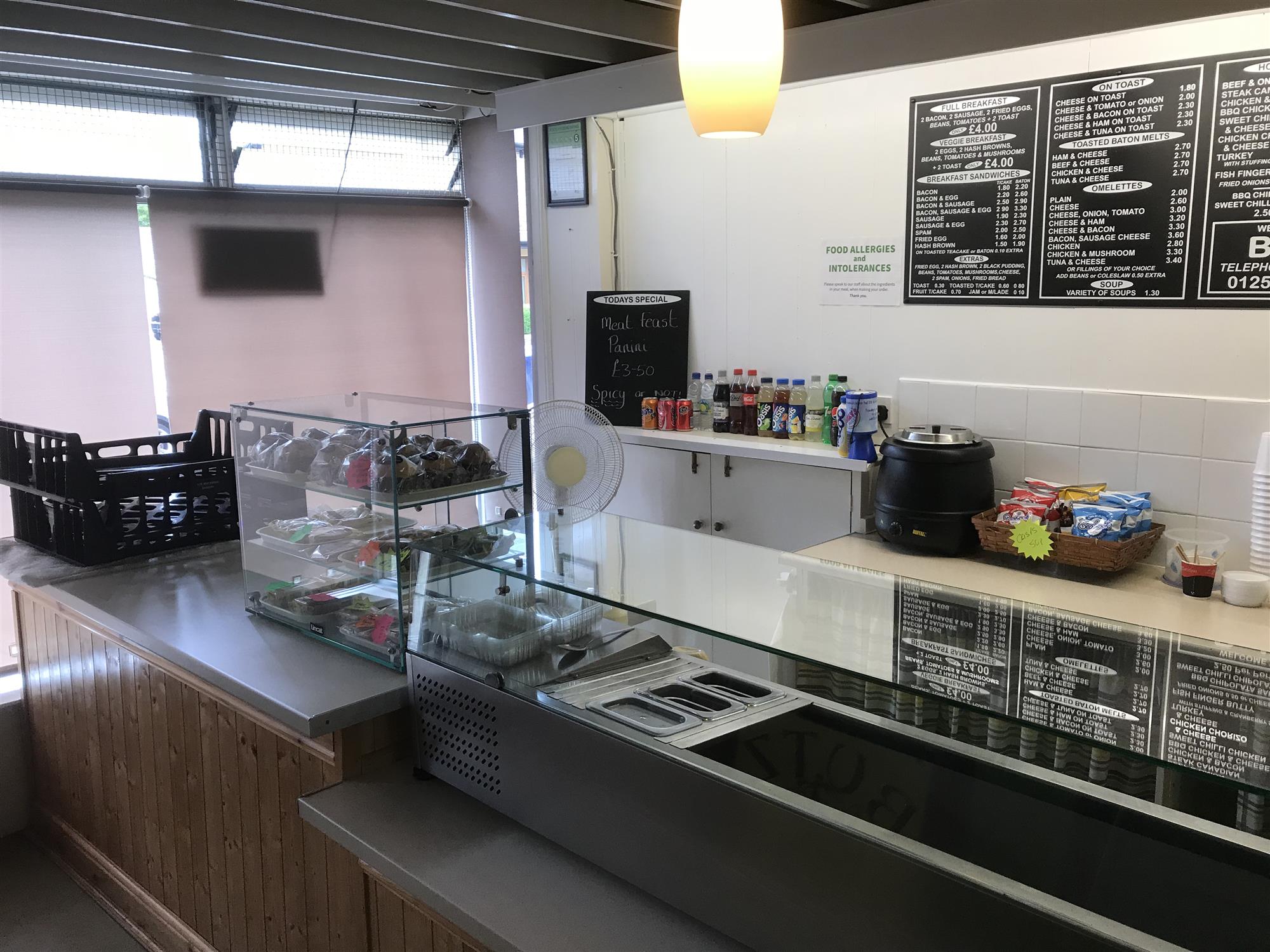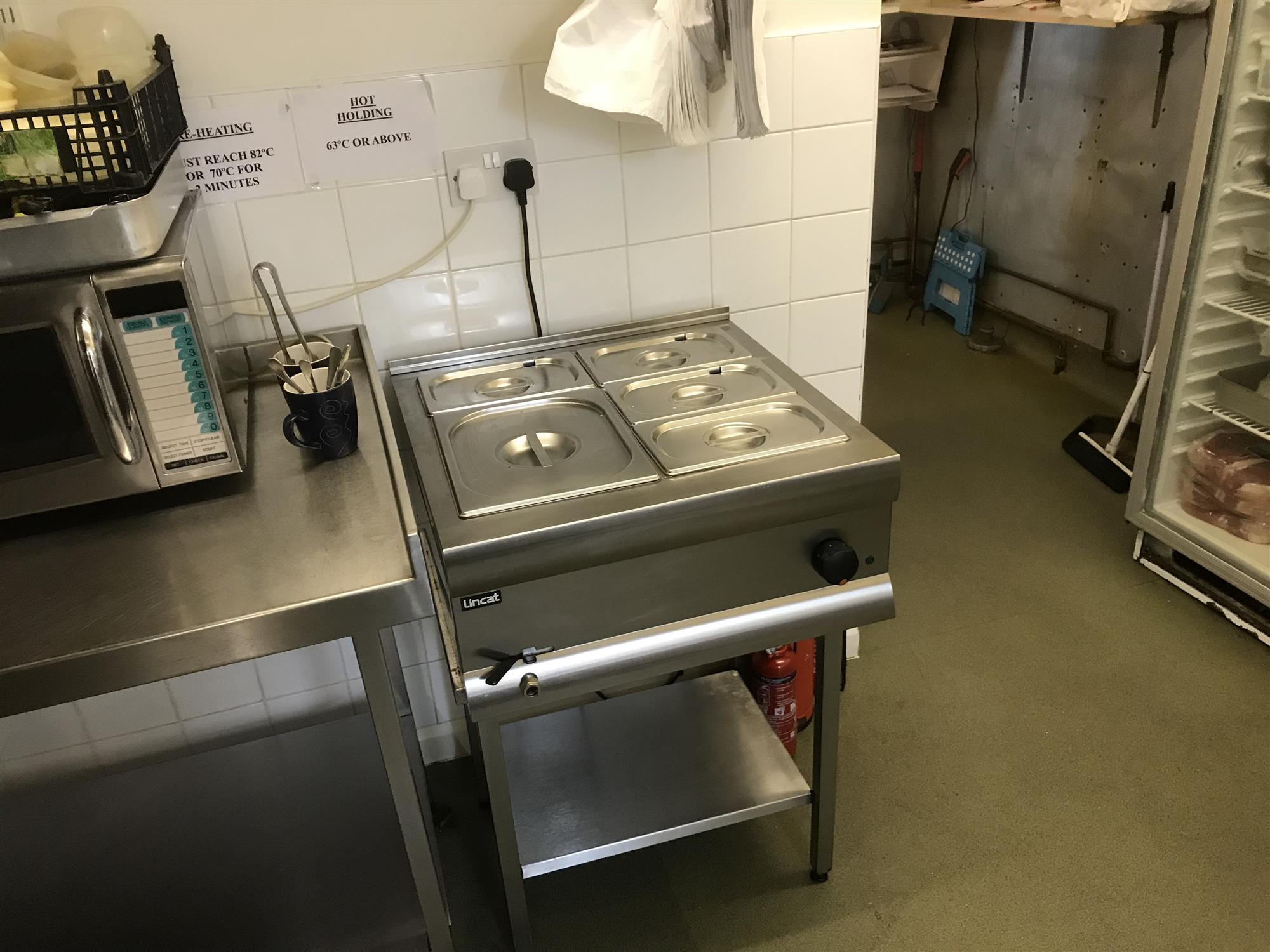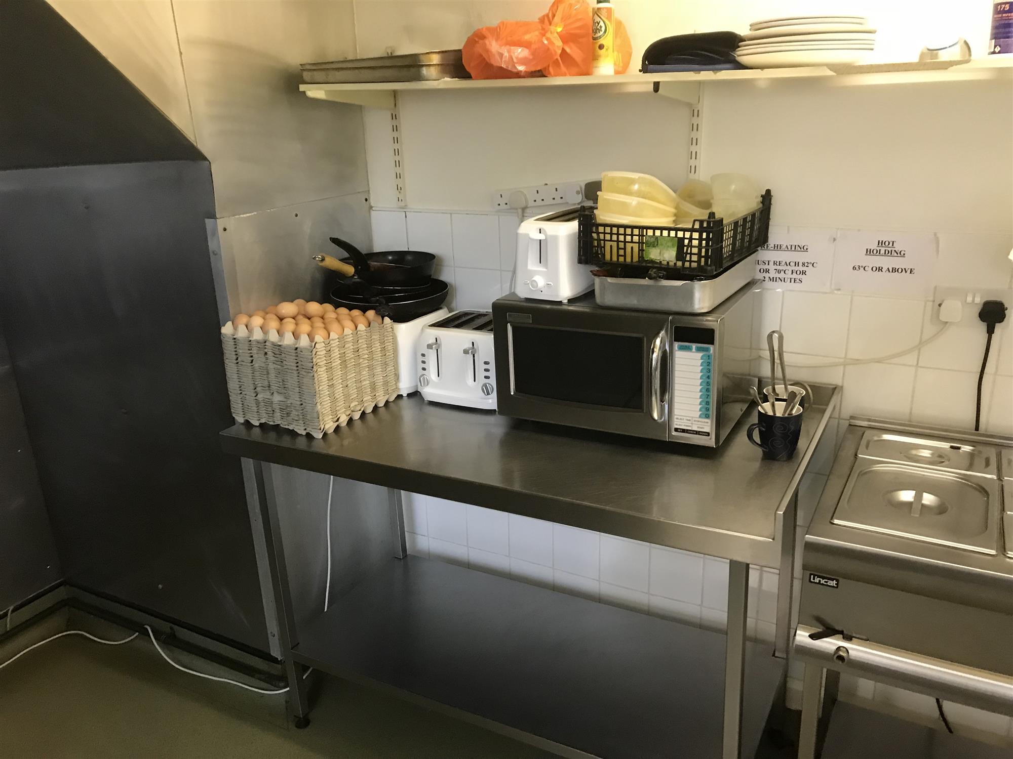 The main public area also features a fully fitted, full-length food service counter with large stainless- steel and glazed food storage and display unit, ambient glazed counter-top confectionery display unit, glazed and refrigerated homemade pie display unit, a glazed-and-stainless steel counter-top hot snack food display unit, electronic till/food ordering point and small open preparation area with soup tureen, hot drinks dispensing machine and easy access through to the main, fully fitted and extensively equipped commercial kitchen with extraction system and tiled and stainless-steel clad walls for easy cleaning.