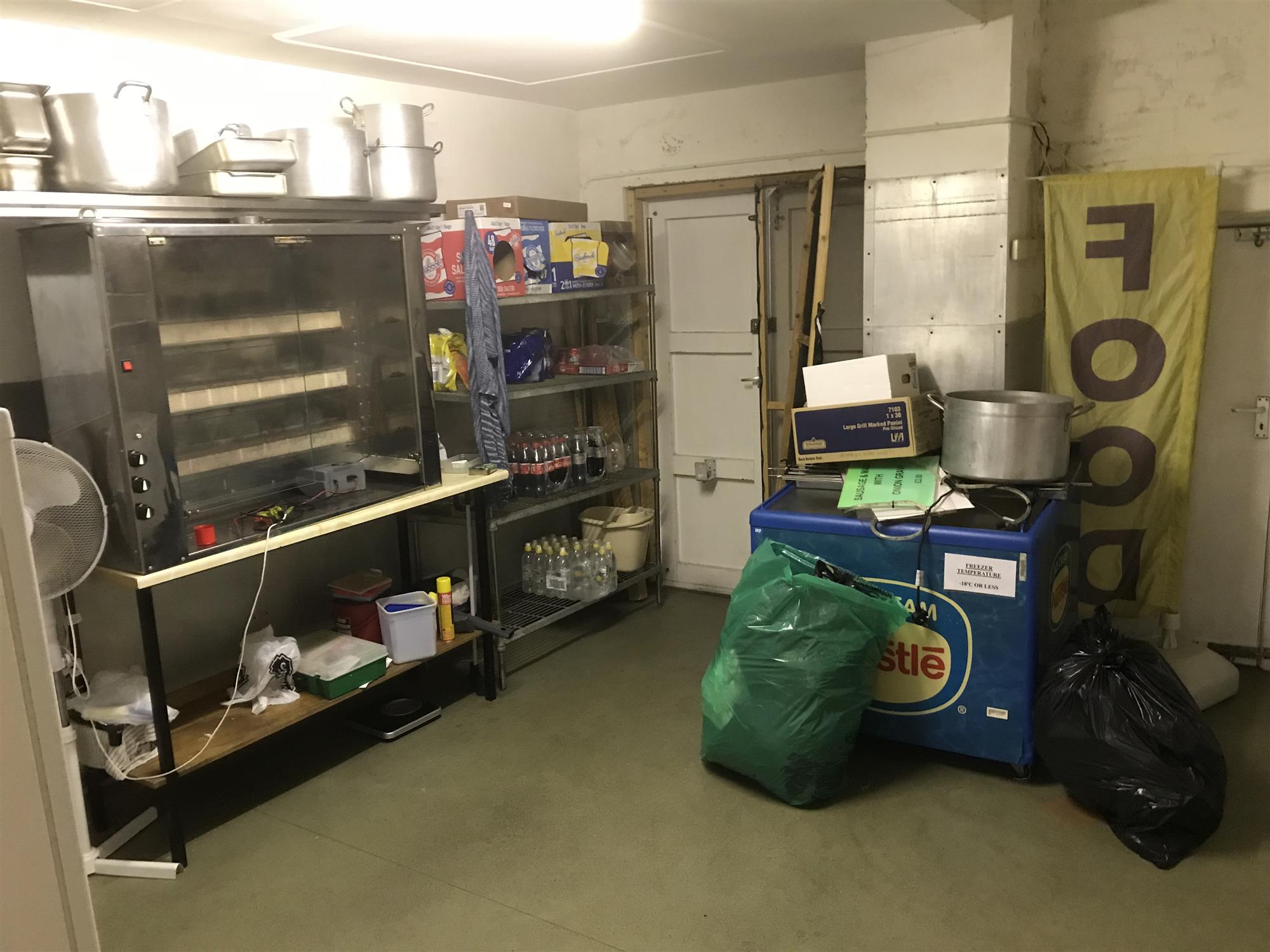 The premises also incorporate a fully fitted and equipped preparation/washing-up kitchen area with fitted sink units and a large general dry goods store housing back-up refrigerator/freezer storage units, with further ancillary accommodation consisting of access to all the usual washroom/WC facilities and separate doorway access to the rear.