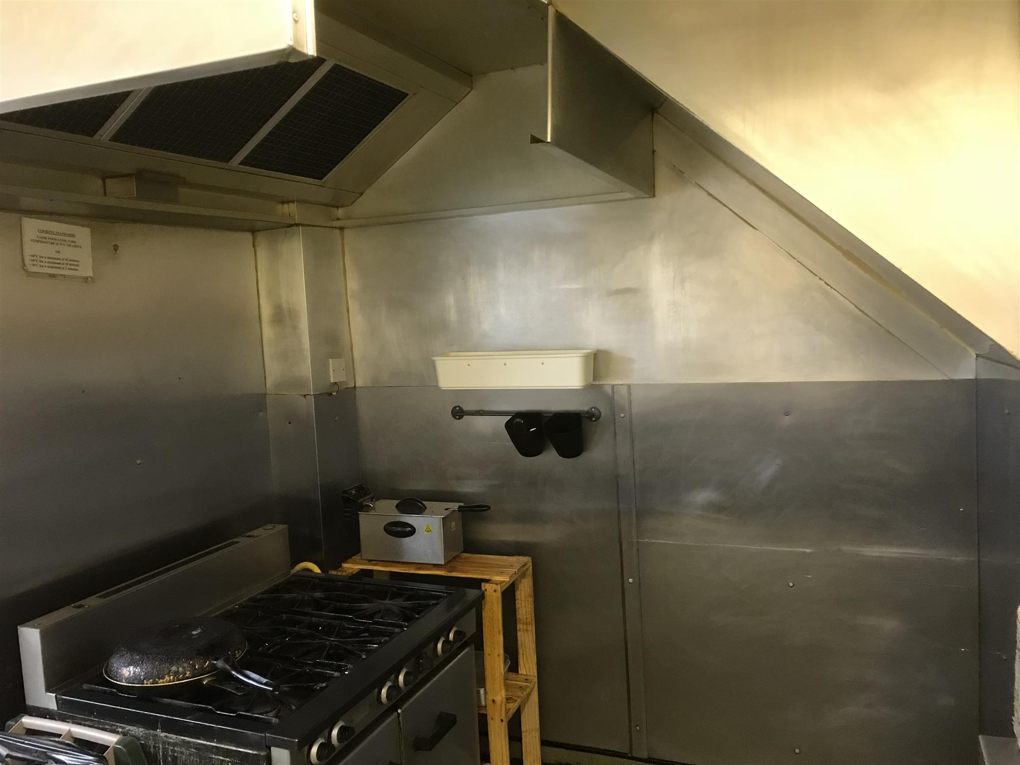 The main kitchen area houses ample work surfaces, storage units and a full range of well maintained, industry standard catering appliances including 6 burner oven and hob, deep-fat fryer, panini grill and various microwave, refrigerator and freezer storage units etc., all of which we understand is to be included in the sale price and further details of which will be made available upon request to any genuine interested parties.