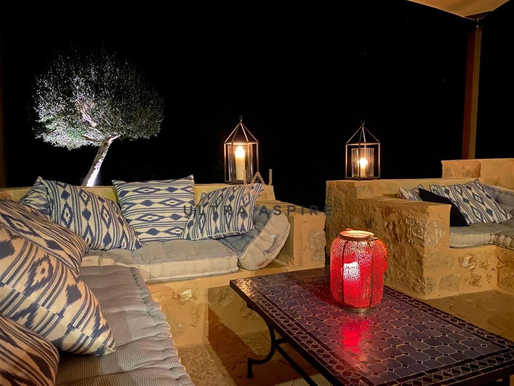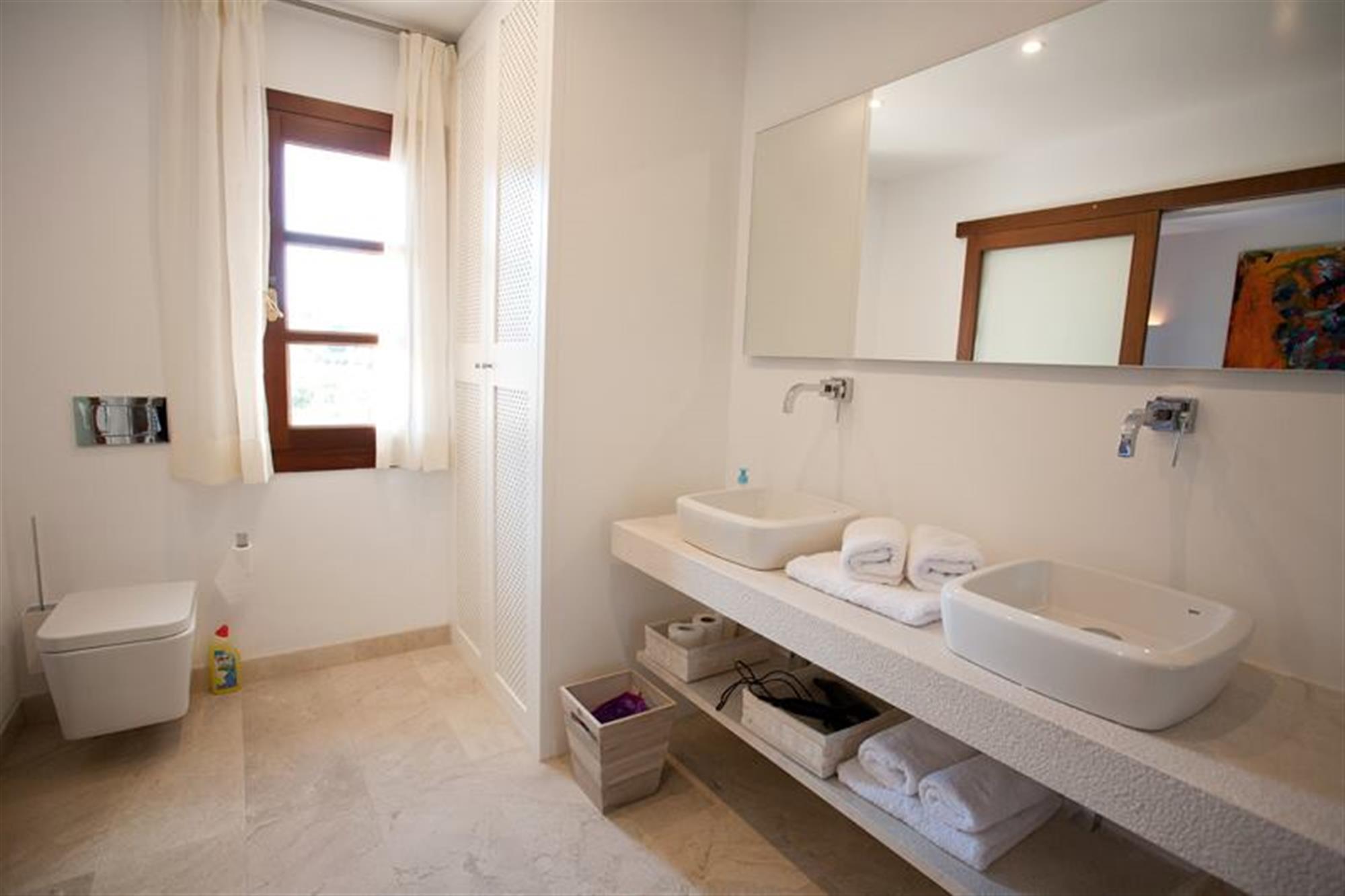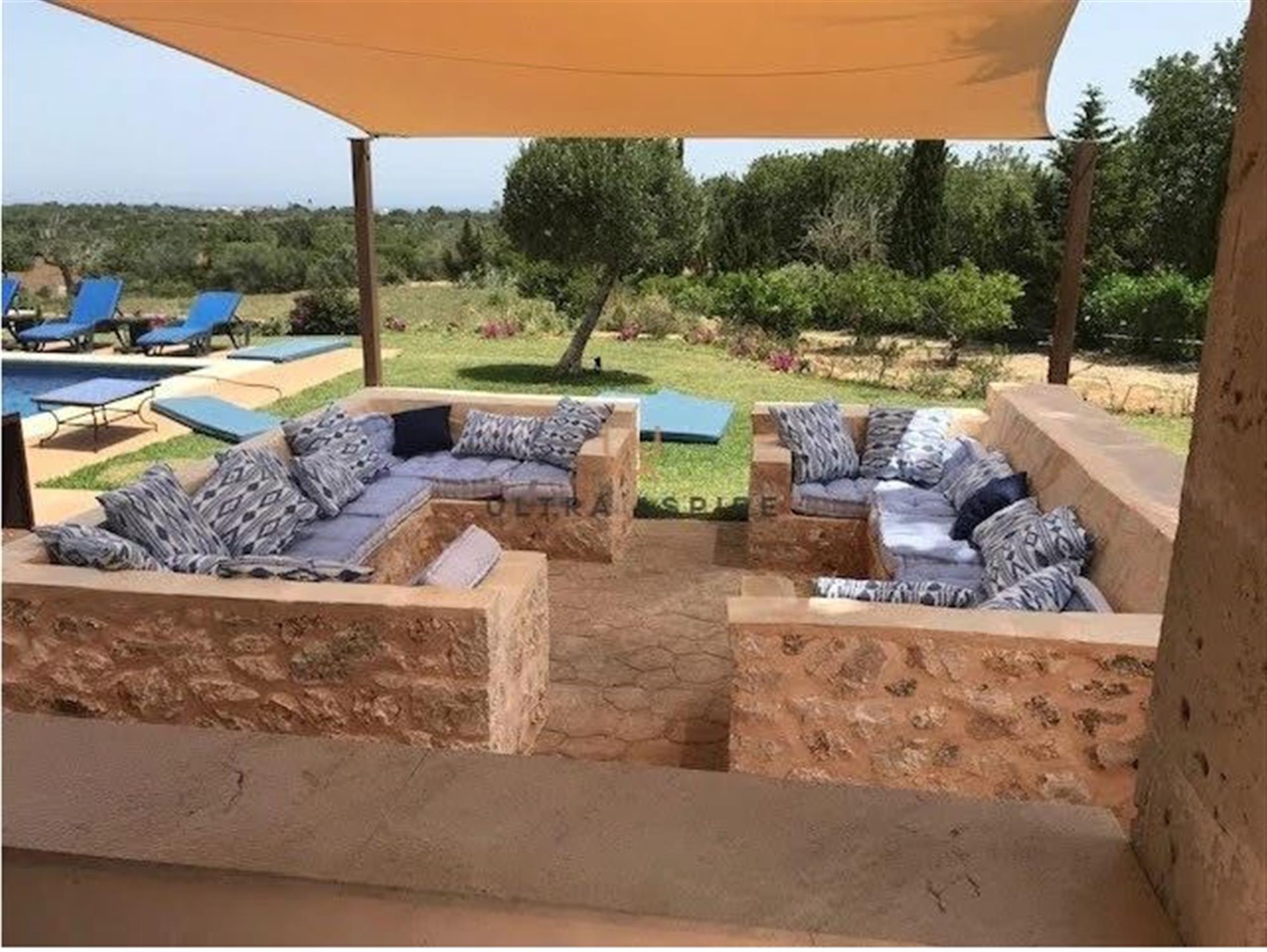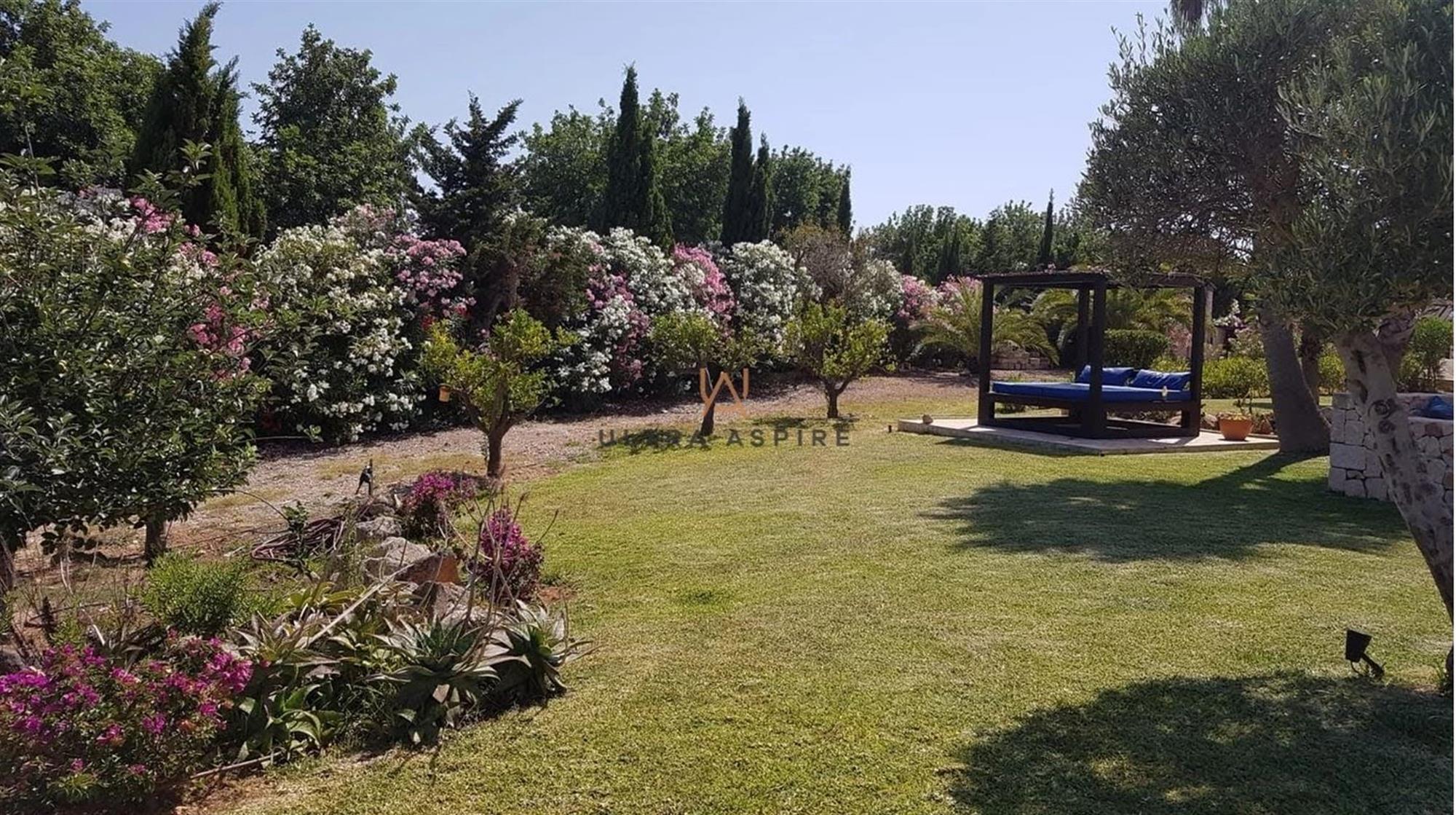 In the external area is a pool of 10 x 5 metres, eight diverse terraces where sunny and shady areas can be enjoyed all day long, a pleasant chill-out area and a wonderfully landscaped garden with lawns, palm trees and orange trees fitted with an automatic irrigation system. Gated parking for four vehicles.