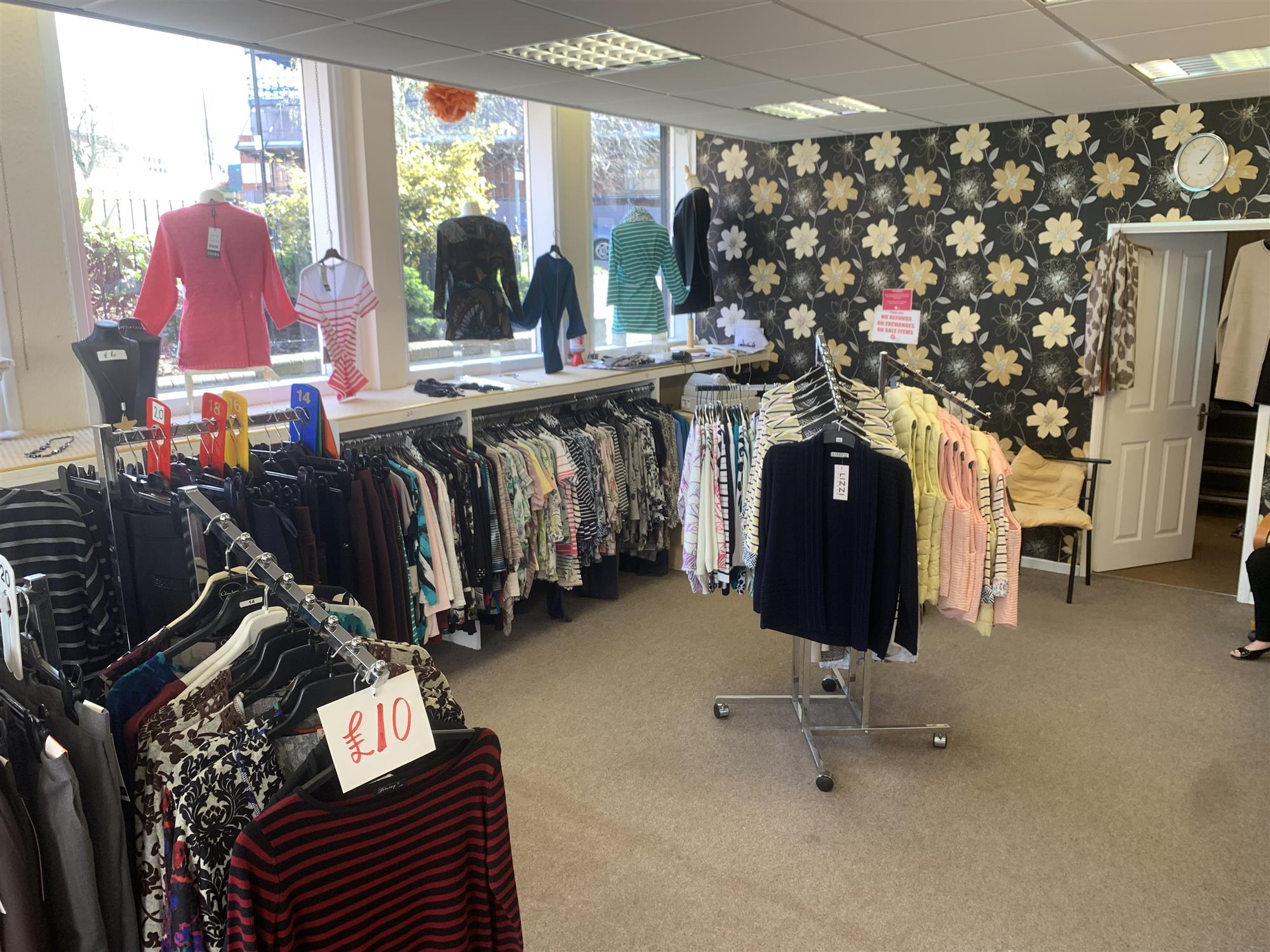 The showroom area houses a full range of well maintained, fixed and freestanding, purpose-built display rails, racking and mannequins for a wide selection of good quality ladies’ casual and formal fashion wear lines and accessories in addition to a prominent, fully fitted point-of-sale counter with full complement of payment facilities and access to two private fitting/changing room areas.