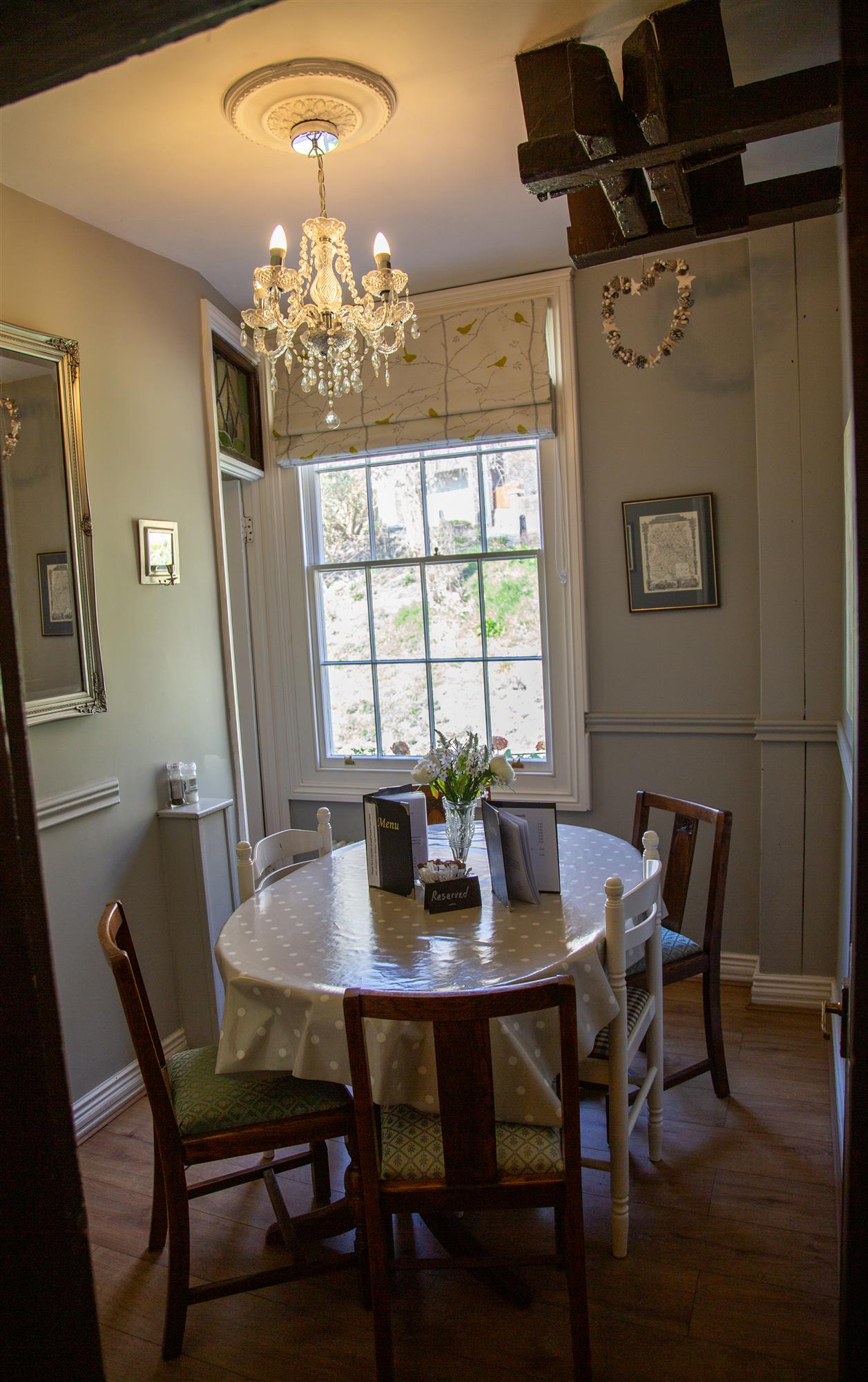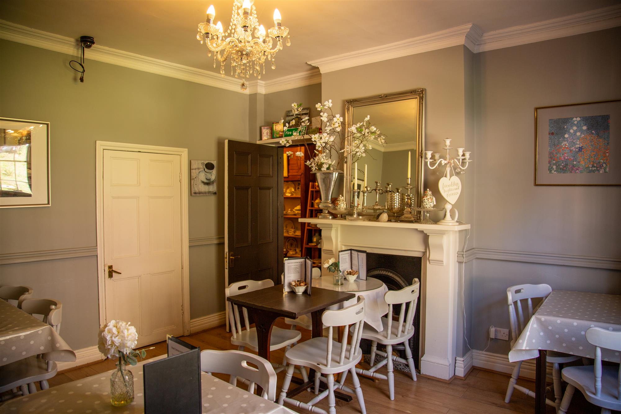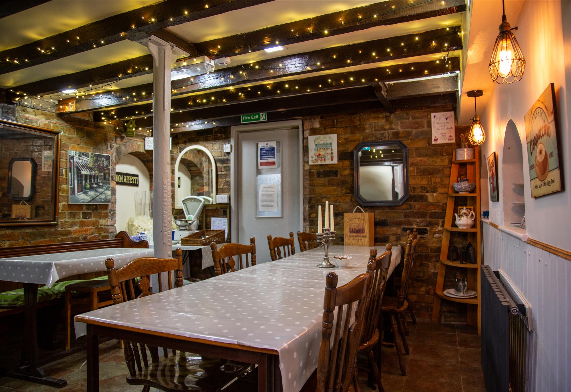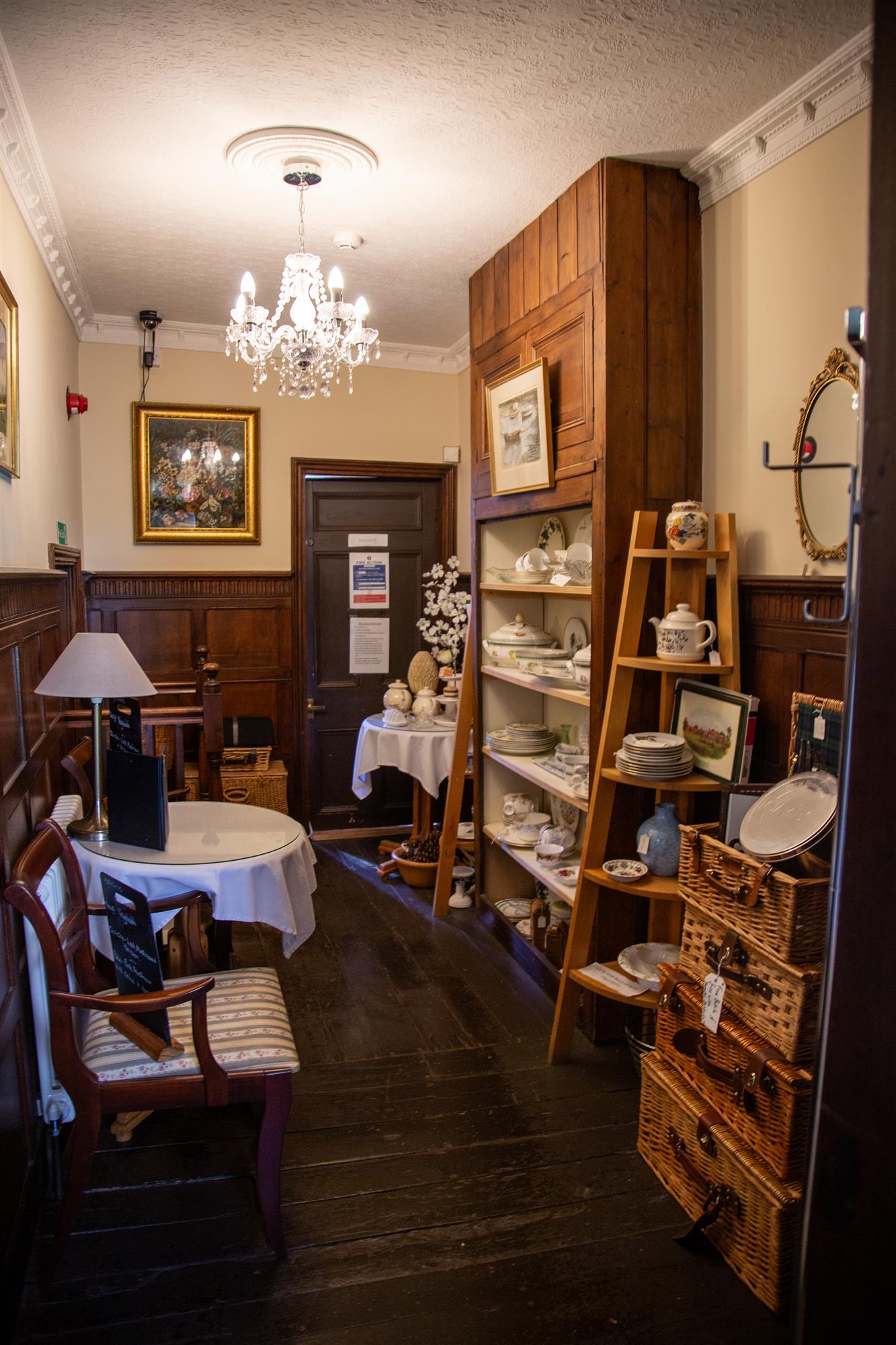 LANDING, having original boarded floor and wood panelled walls, seating for two. PRIVATE DINING ROOM seating 6 with private CLOAKROOM. TEA ROOM seating 20, again with delightful French inspired character. Main CLOAKROOM, SERVICE CUPBOARD, OFFICE.