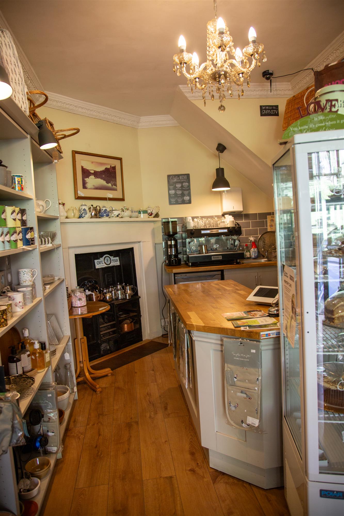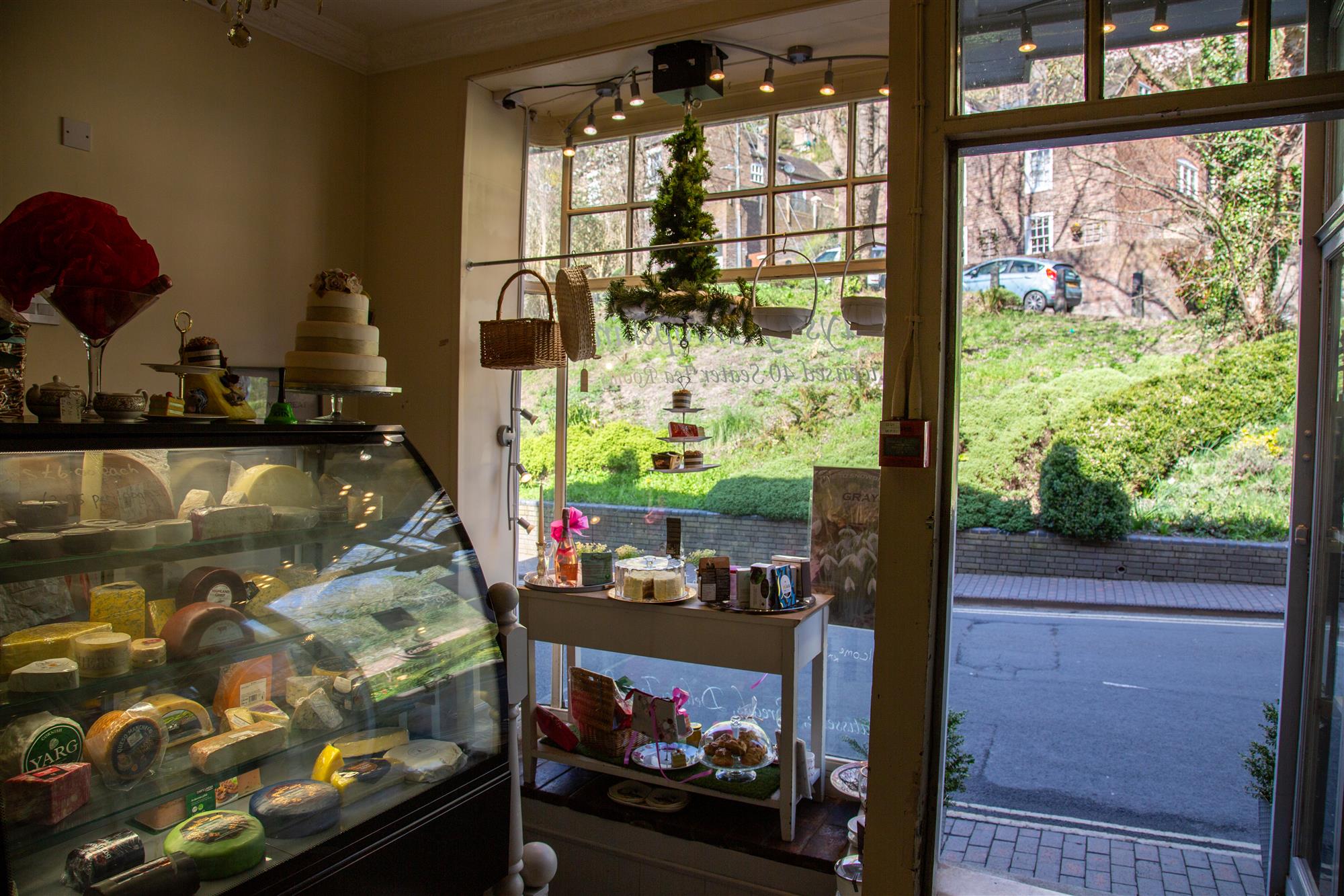 Front entrance from the high street leading into shop and DELICATESSEN having a wealth of charm and character, original Victorian bread oven, stripped wood effect flooring, cheese counter, service counter, barista counter, shelving and refrigeration.