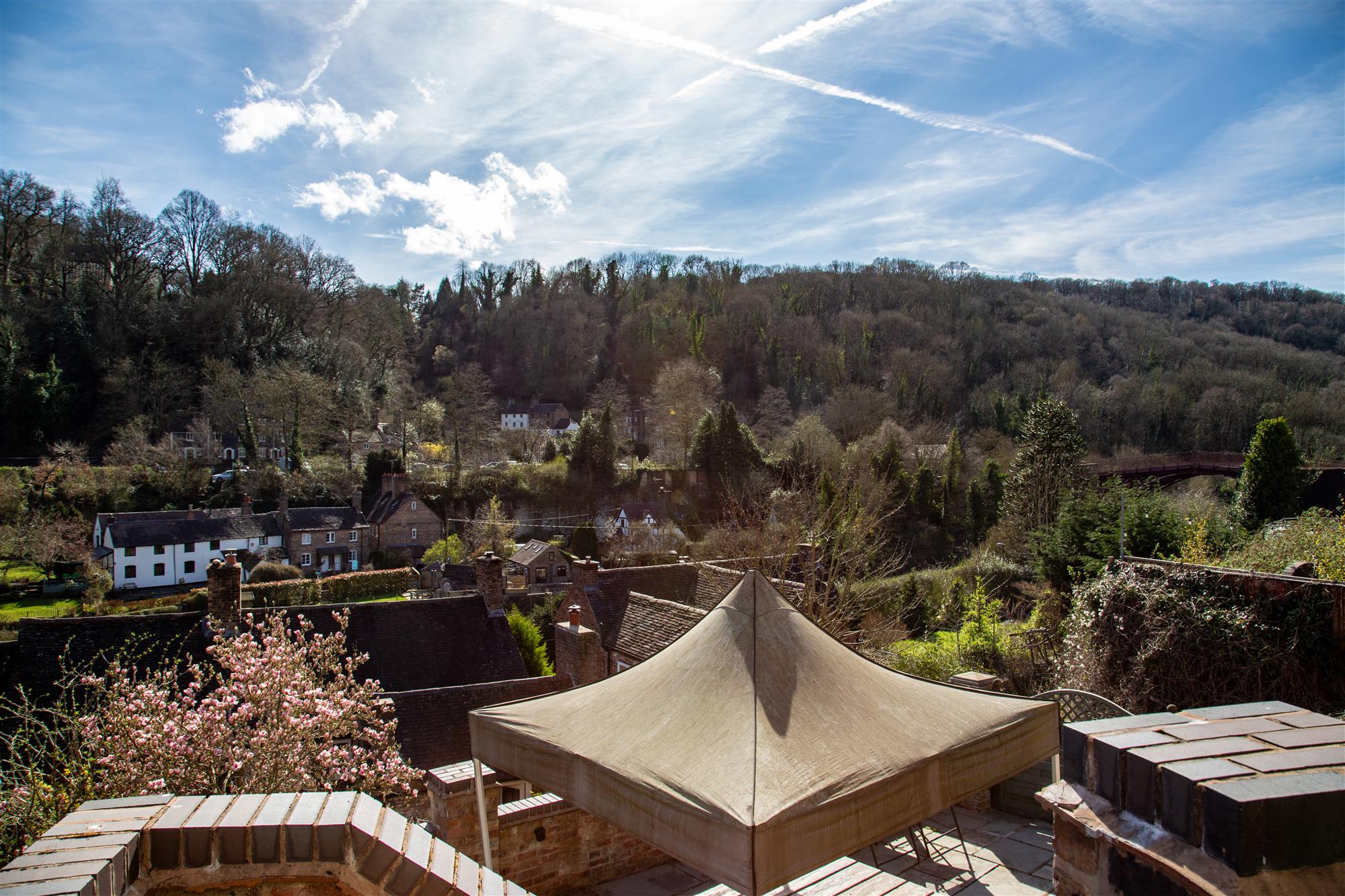 To the side of the property is an enclosed cobbled WALKWAY with access to the APARTMENT and kitchen and small patio at the rear with outstanding views of the bridge and river Severn.