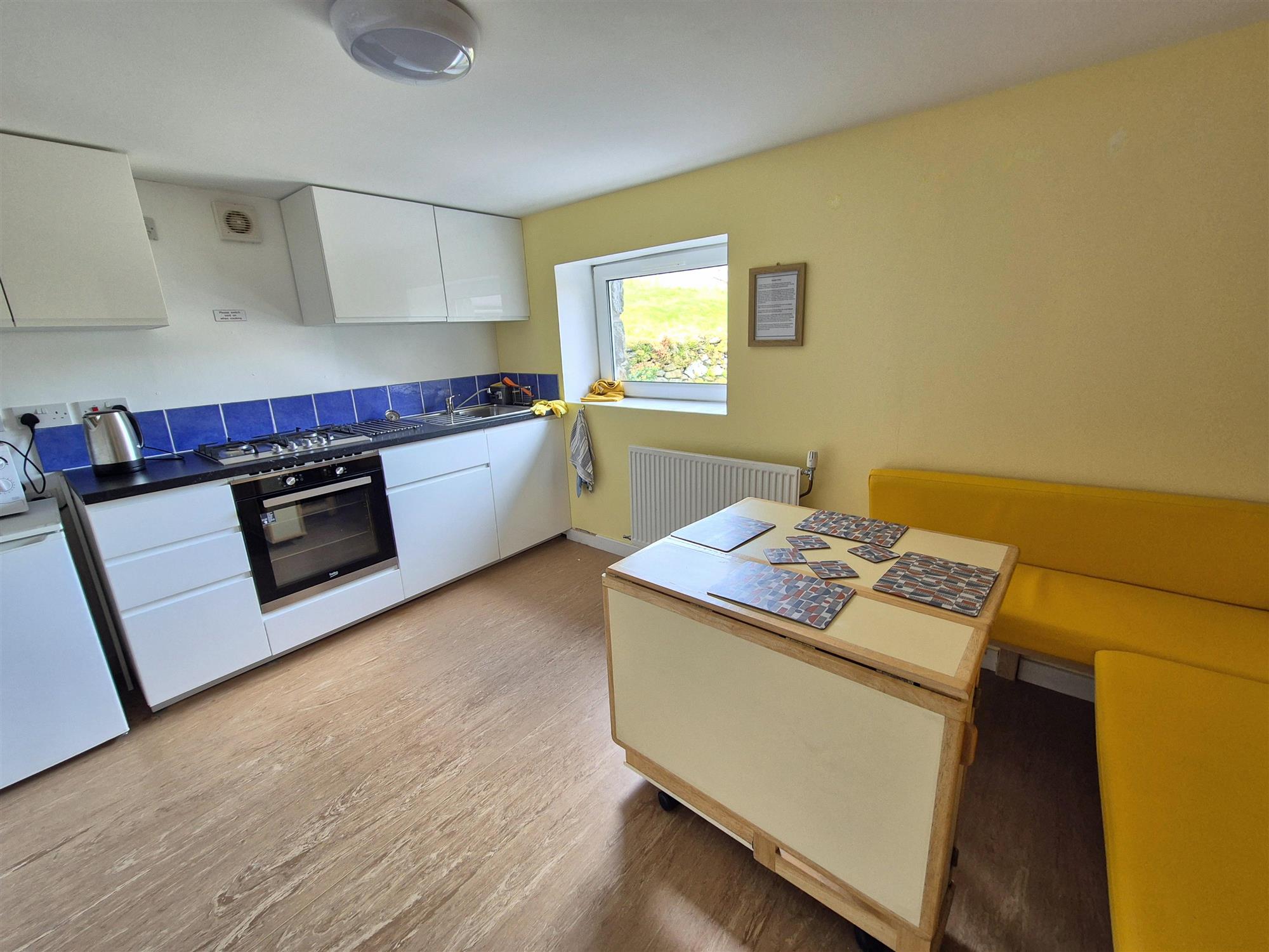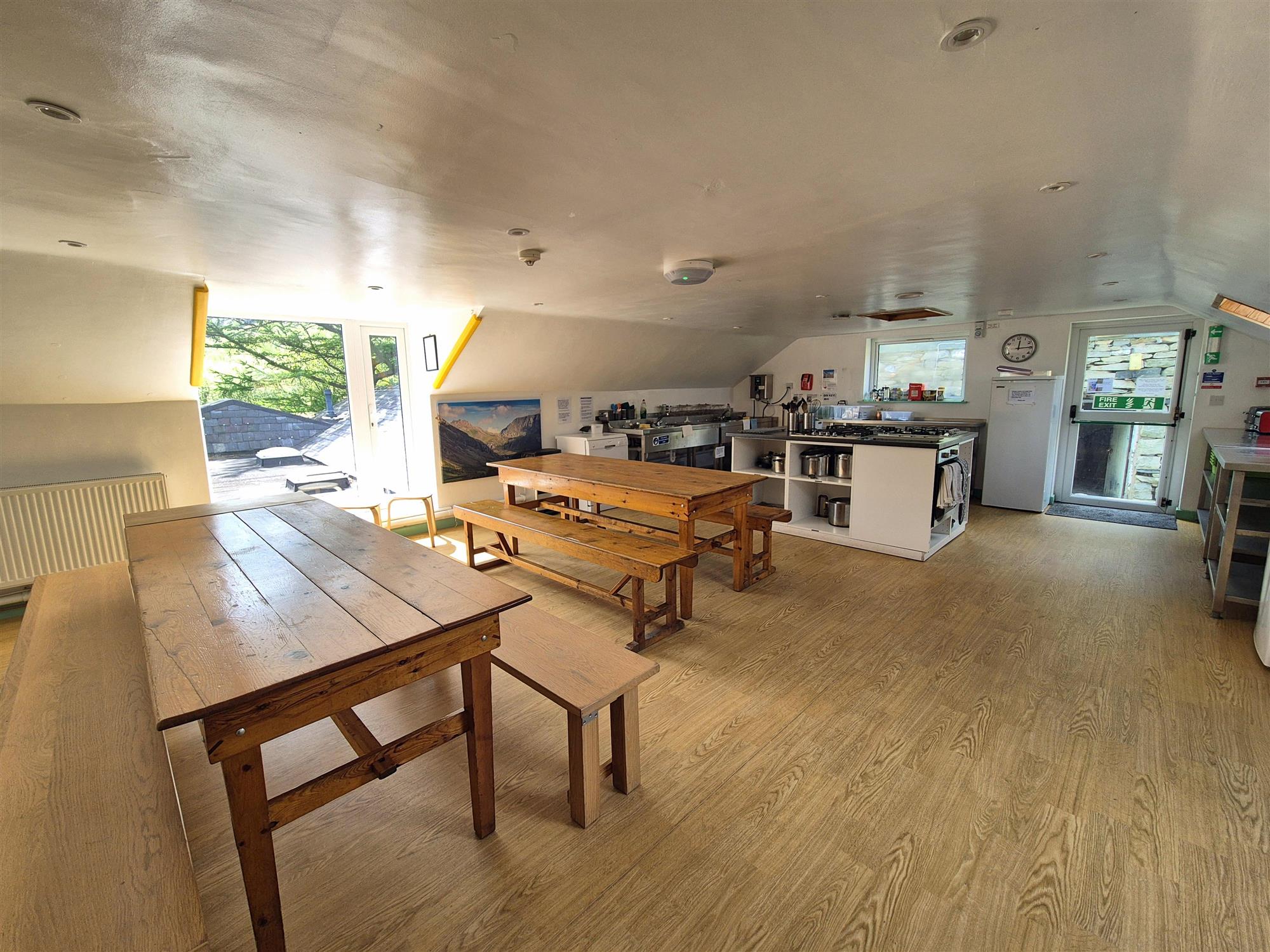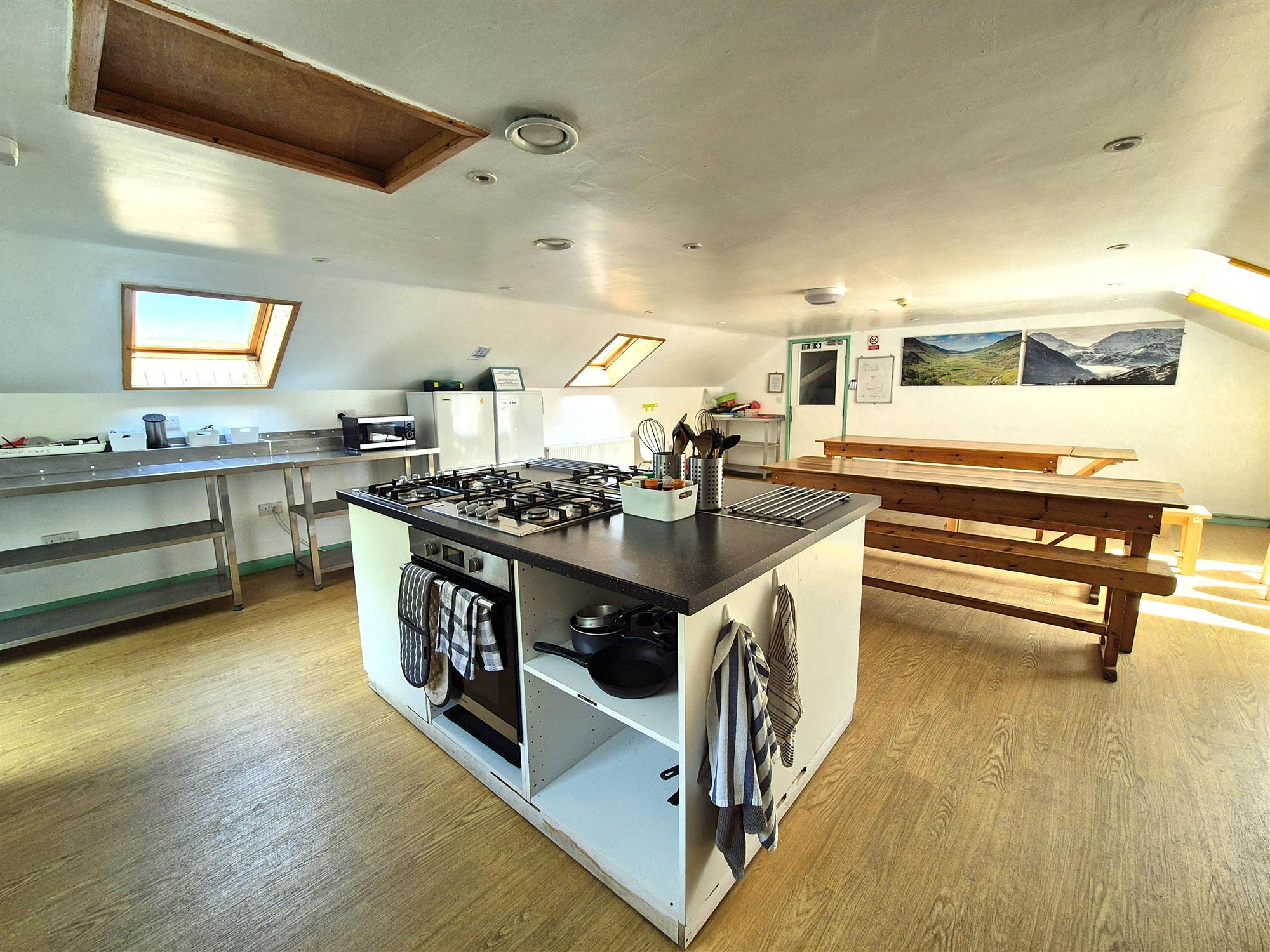 COMMUNAL KITCHEN and DINING AREA which is of a good size with a central island area, multiple hobs, ovens and fridges The room has vinyl flooring and offers a good selection of catering equipment and appliances. Bench seating to accommodate 25.