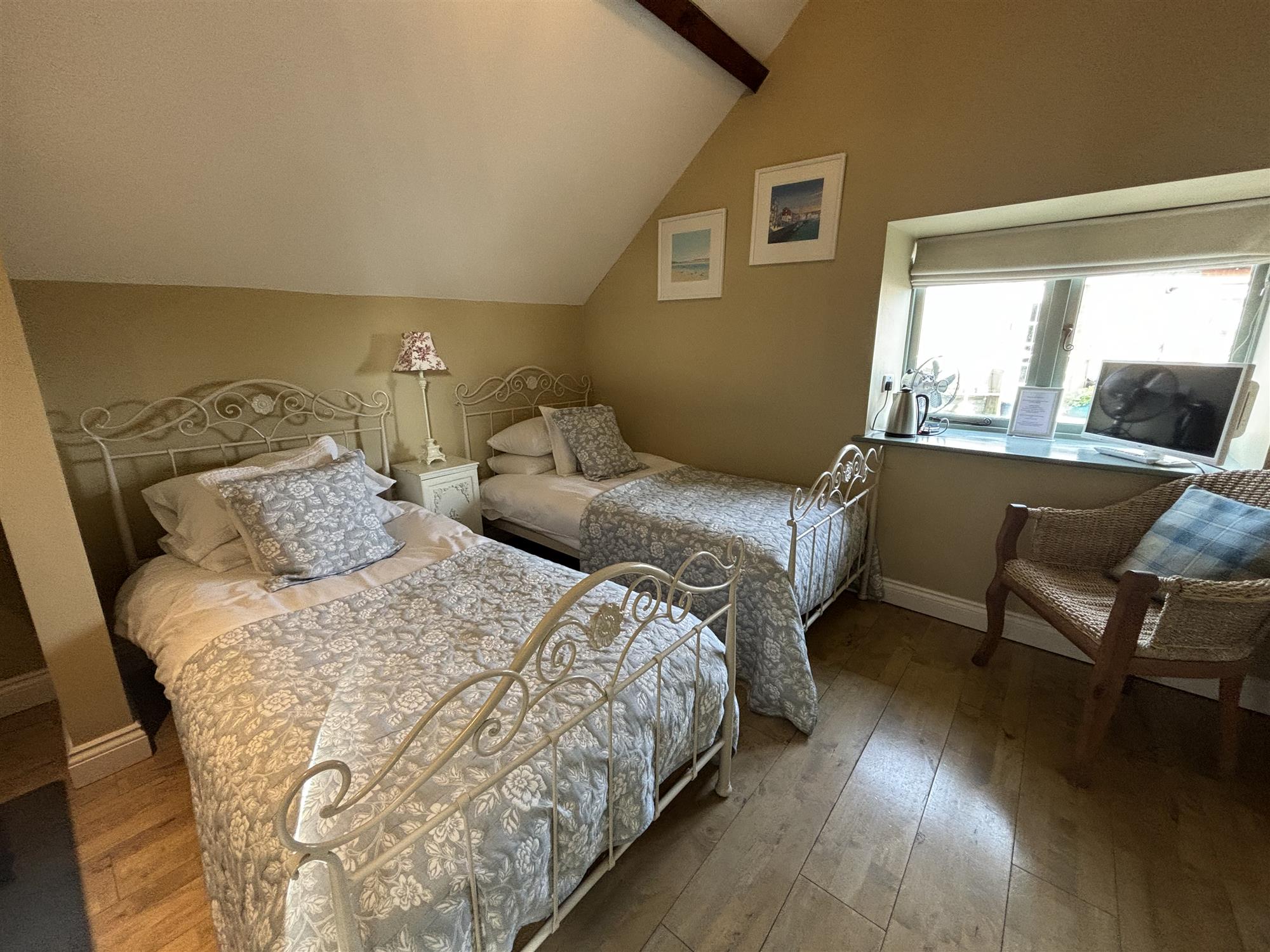 The ground floor of the Old Cider House has ROOMS 1 and 2, each being a DOUBLE BEDROOM with EN SUITE BATHROOM. ROOM 5 is a TWIN ROOM with EN SUITE WET ROOM (ACCESSIBILITY ROOM). The first floor has ROOMS 3 and 4, both TWIN BEDROOMS with EN SUITE SHOWER ROOMS. BOILER ROOM. The Old Cider House was fully refurbished in 2012/2013.