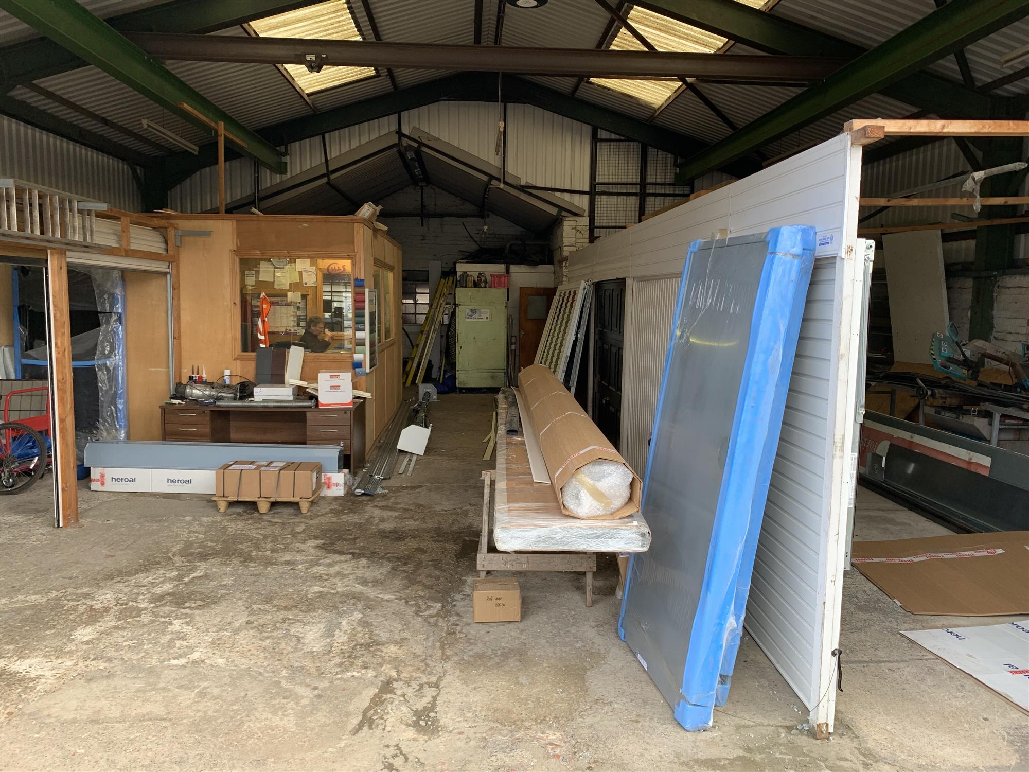 Affording easy access by means of large, full-height steel industrial roller shutter doors, with separate public/personnel entrance with steel security roller shutter, these substantial and well maintained detached, single-storey leasehold commercial premises provide excellent and highly functional internal business accommodation, which briefly comprises the main, spacious and open-plan maintenance, repairs and assembly workshop, storage warehouse and goods inward/outward area with concrete flooring, high apex ceiling with roof lights, fluorescent lighting throughout, workbench area and storage racking.