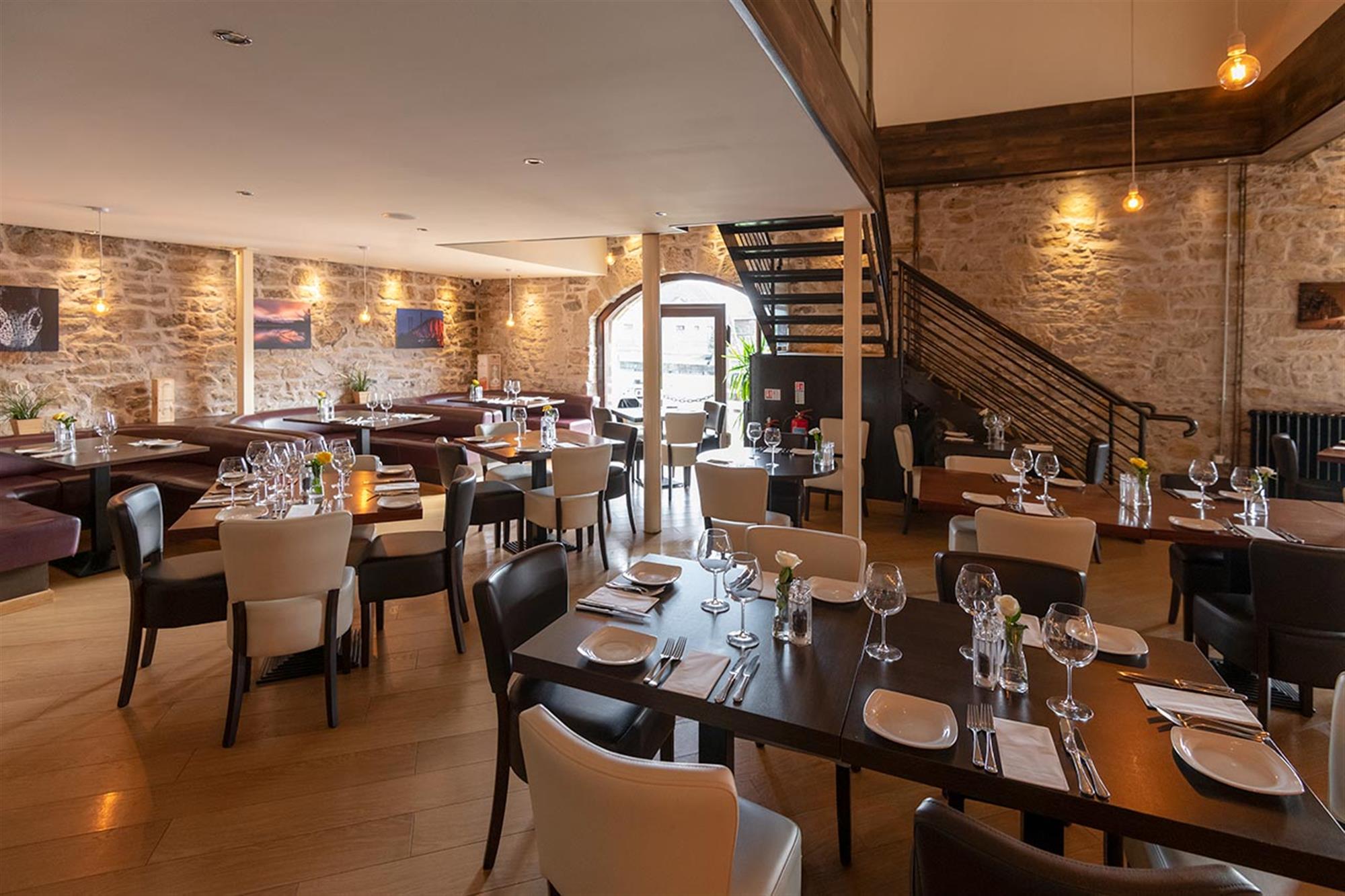 Occupying an outstanding waterside trading position with excellent access to major transport links in the vibrant and historic town of Falkirk in the Forth Valley area of the Central Lowlands of Scotland, to the exterior the premises are well signed and immaculately presented and incorporate a good-sized private patrons’ car park which may comfortably accommodate up to ten vehicles, in addition to a charming, well maintained and furnished riverside patio terrace trading area providing approximately 30 additional external dining covers in good weather.