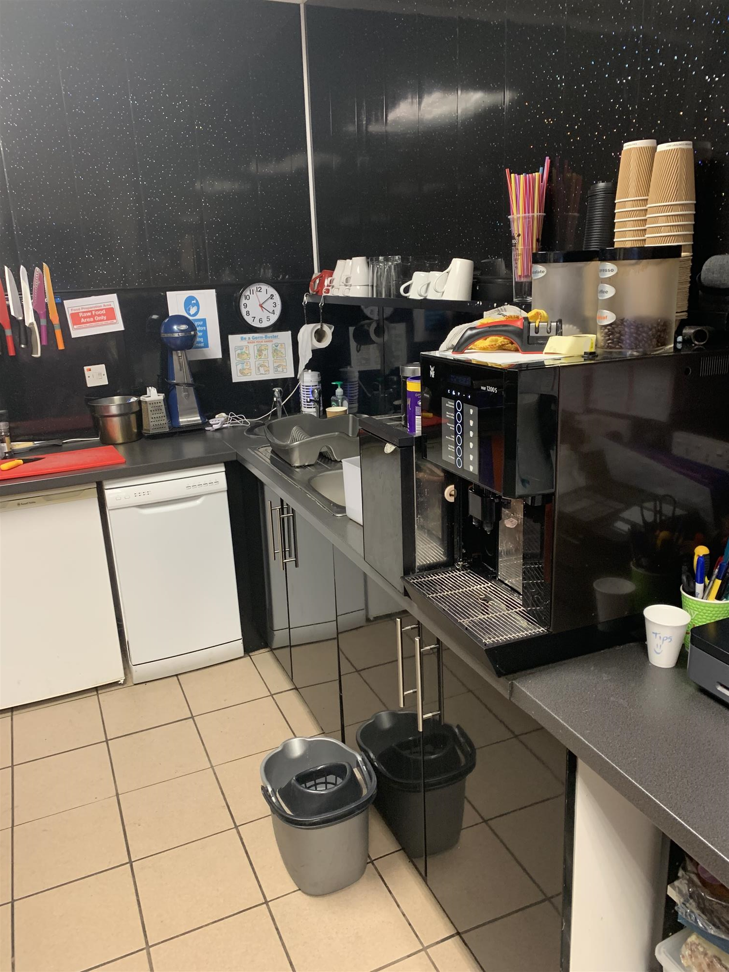 The kitchen houses ample stainless-steel work surfaces, storage units, fitted sink unit and a full range of well maintained, industry standard appliances including modern hot drinks dispensing machine, stainless-steel bain marie, burger griddle, deep-fat fryer and various microwave, refrigerator and freezer storage units etc., all of which we understand is to be included in the sale price and further details of which will be made available upon request to any genuine interested parties.