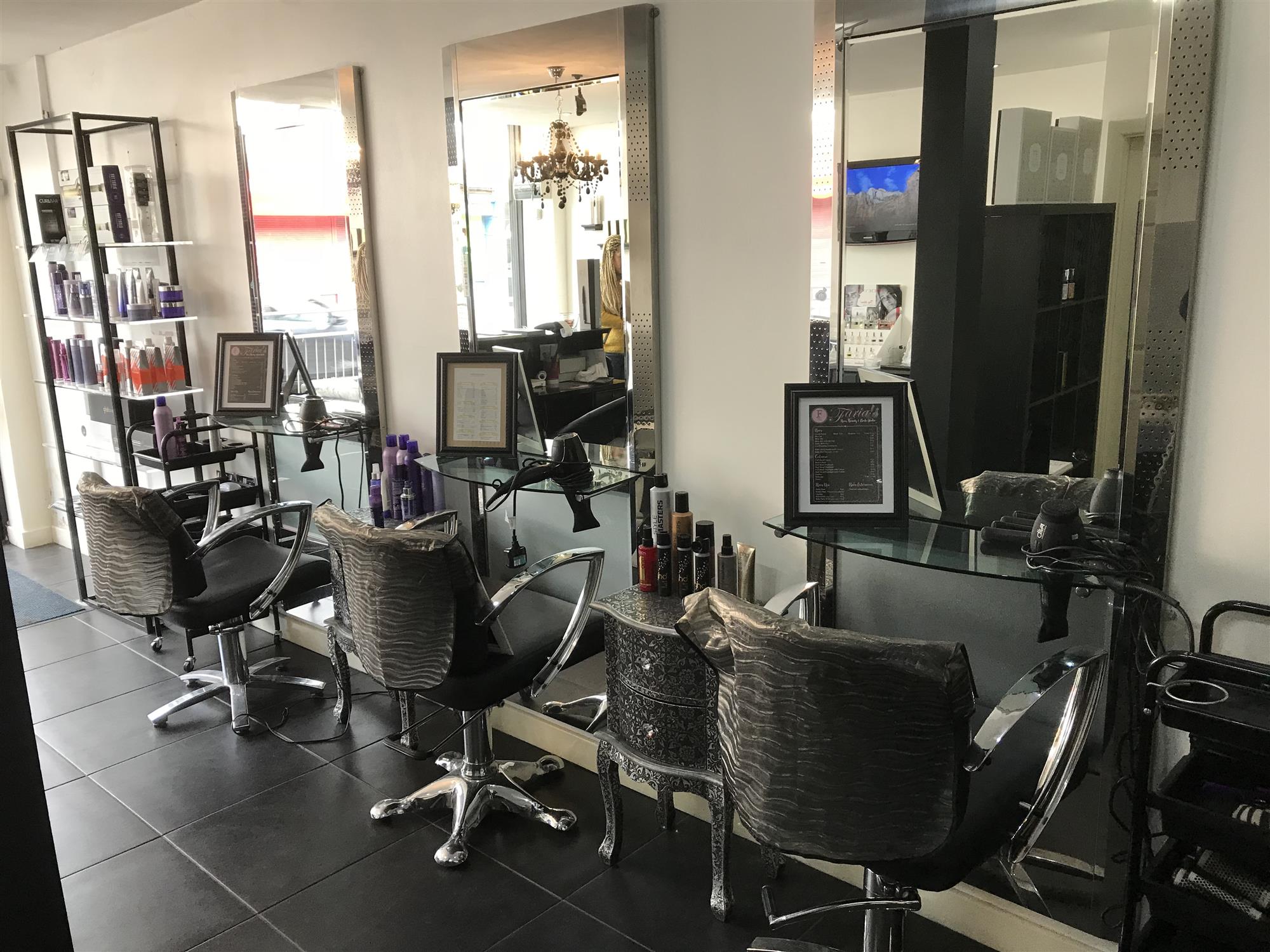 The main salon area currently comfortably accommodates 3 x fully equipped mirrored styling stations with hair dryers and 1 x fully equipped back-wash station, together with a fully equipped manicure station and a prominent and fully fitted, freestanding padded service counter with telephone and full complement of payment and appointment booking systems.