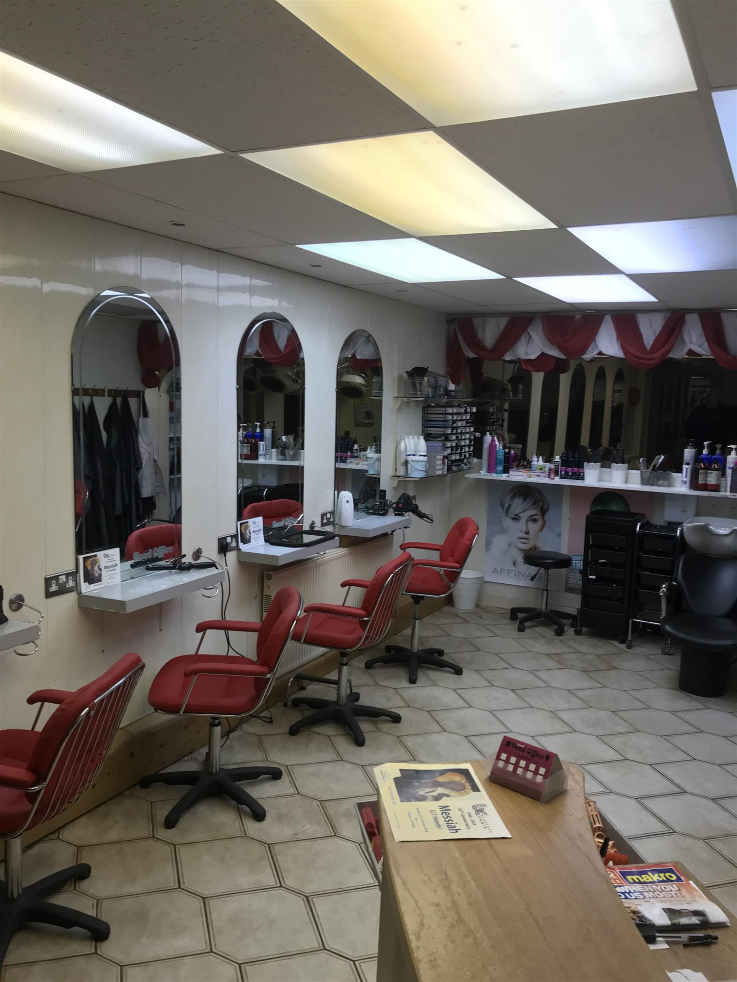 The main salon area currently comfortably accommodates a total of 7 x fully equipped mirrored styling stations (3 with overhead drying positions) together with 2 x fully equipped backwash stations and a small reception area with comfortable seating for waiting customers and a fully fitted service counter with telephone and full complement of payment and appointment booking systems.