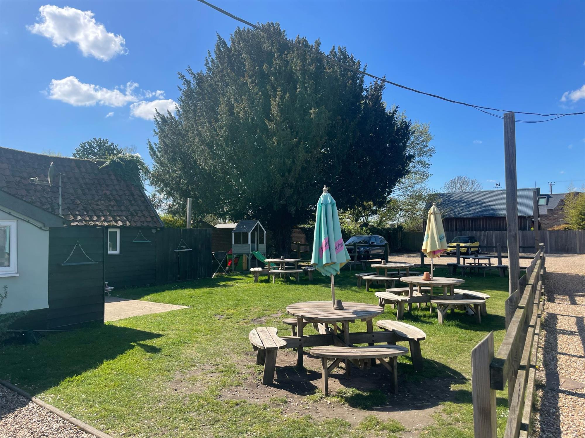 Lawned TRADE GARDEN with bench seating for 42. Rear CAR PARK with parking for 16 vehicles.
