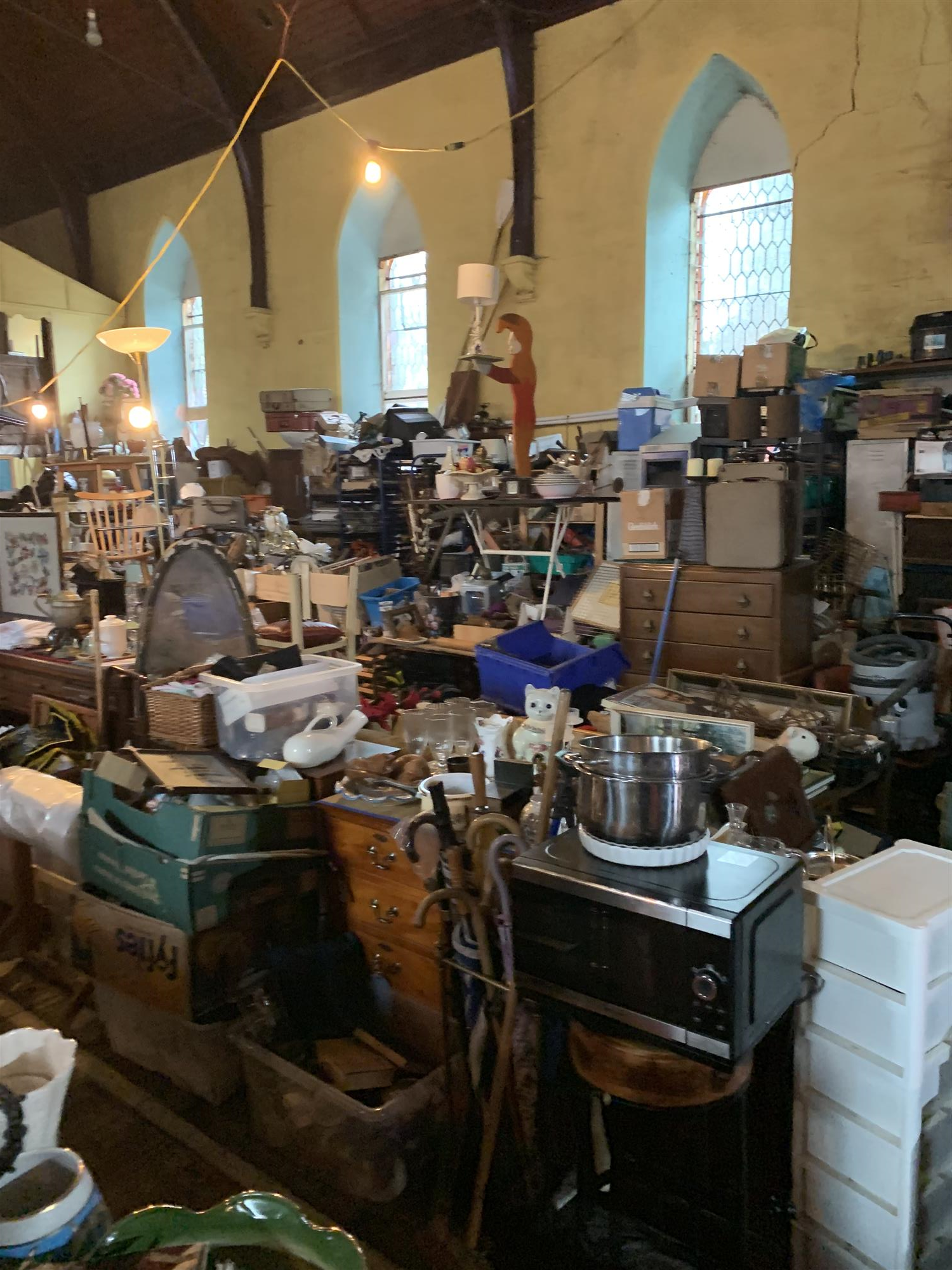 The main showroom area affords extensive display space for a stunning and eclectic range of antique, vintage and retro goods and affords staircase access to a large, former choir-stall MEZZANINE LEVEL employed for storage purposes.