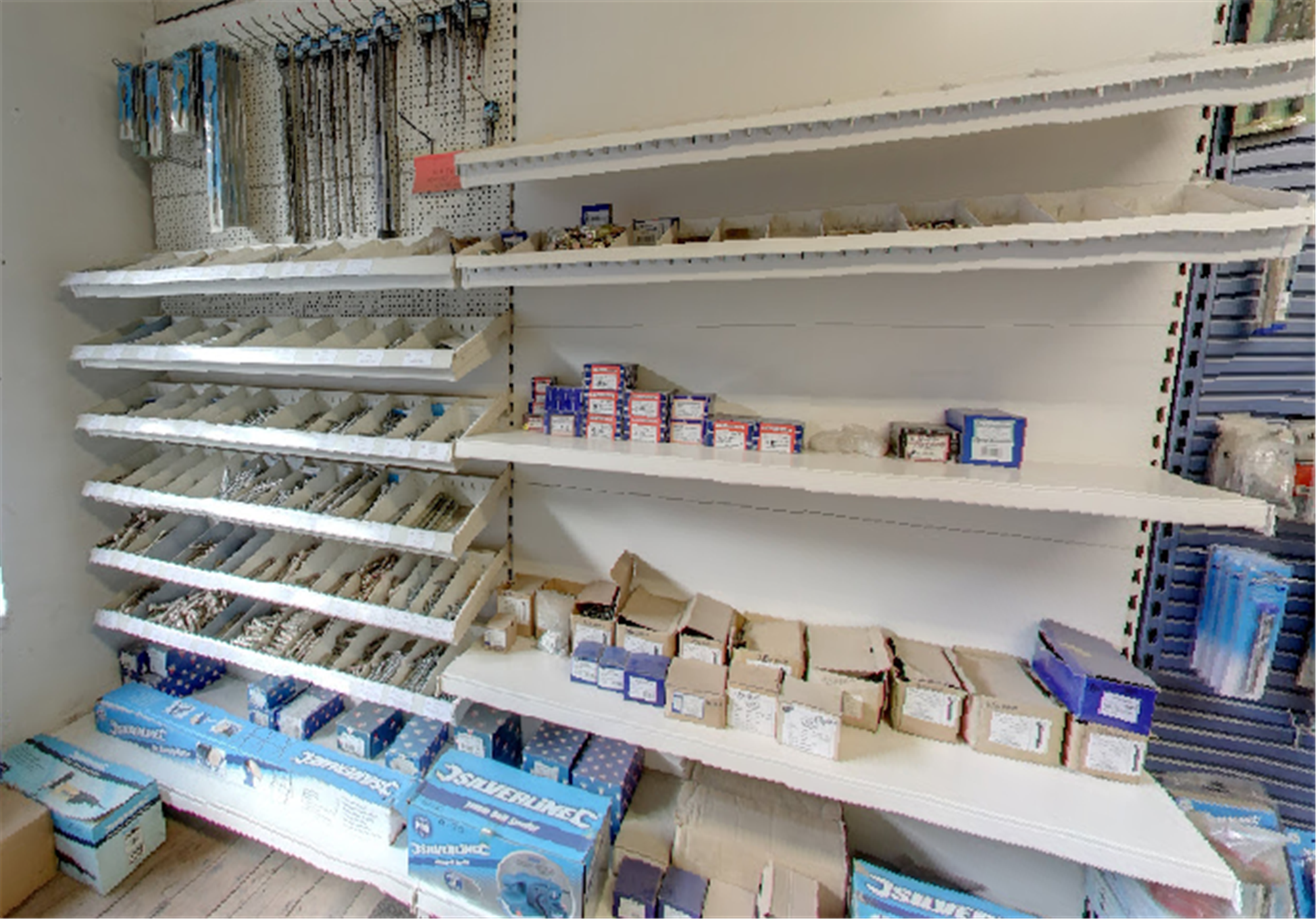 Affording easy access for deliveries and despatches by means of large, full-height steel industrial roller shutter doors, these substantial and well fitted leasehold terraced parade premises provide excellent and highly functional internal business accommodation, which briefly comprises the main warehouse and goods inward/outward area with concrete flooring, high ceiling and diffused fluorescent lighting throughout, which affords ample and secure storage space for the company’s substantial inventory of tool and plant stock.