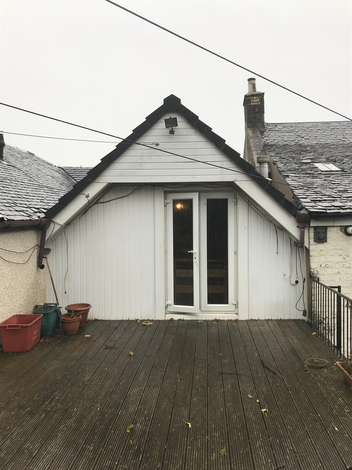 The living accommodation also affords feature glazed double French door access onto a large, impressive and well maintained decked private flat-roof patio terrace.
