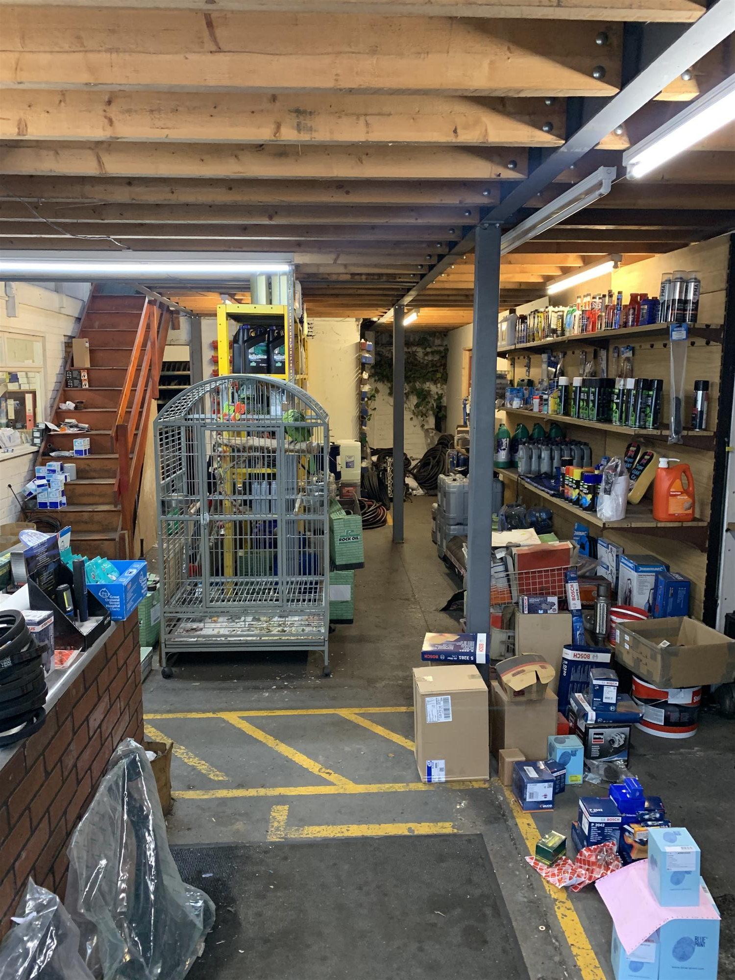 Accessed by means of its own separate and inviting glazed public entrance, the ground-floor premises also incorporate a spacious former parts sales and customer service area with extensive display and storage racking and prominent and fully fitted trade sales counter.