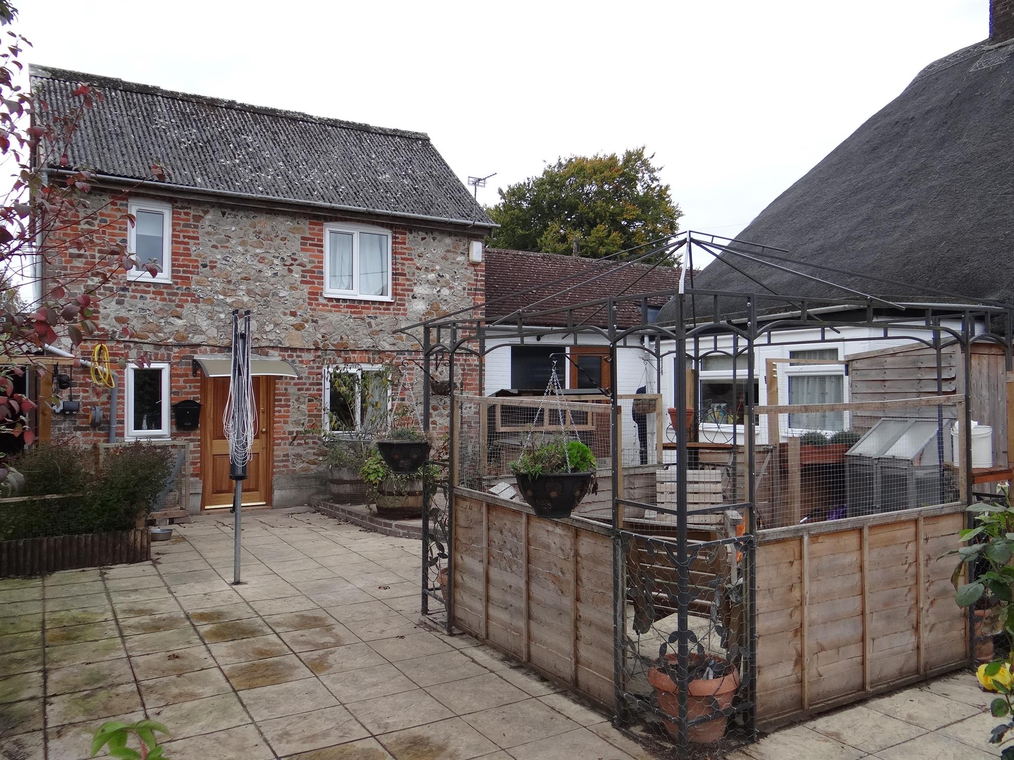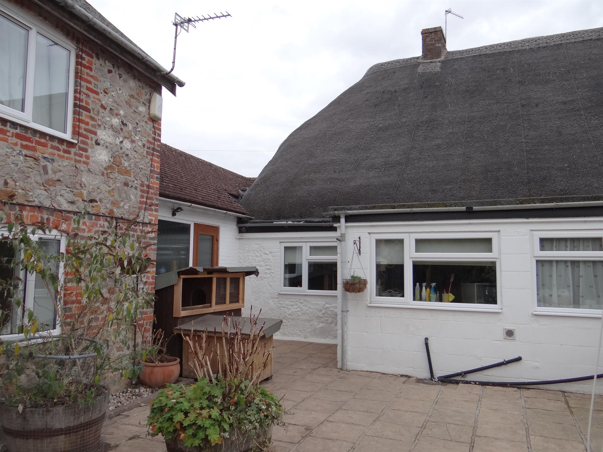 The substantial detached property is believed to be approximately 300 years old and has a thatched roof on the main property. We are informed the roof was last thatched in May 2017. To the right of the property there is a double length garage with parking to the front and rear access to the garden. To the left of the property a gated path with access to the large rear garden which is mainly paved with various borders and dog kennel. The property benefits from double glazed windows throughout and gas central heating within the main house.