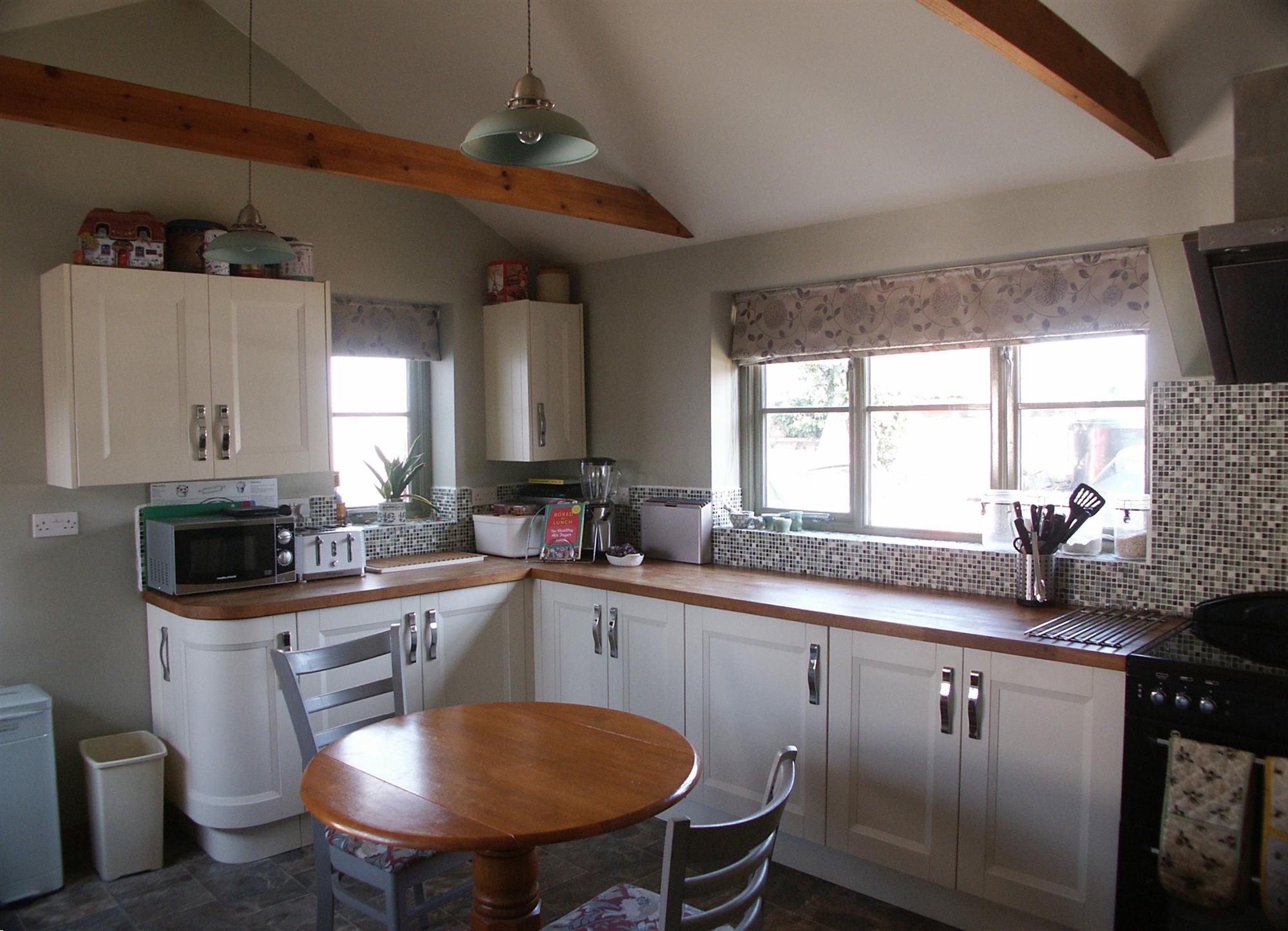 OUTSIDE: To the front of the property is a fenced garden, a shingle area with tables and parking. Together with designated parking area. To the rear is a large garden backing onto fields with Two Sheds, patio area, pond, well and views across the fields. To the side of the property is a further Garage and parking for owners.